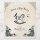 O Rótulo do Vinho do Chá de fraldas Rock a Bye Baby Gothic apresenta um cavalo de balanço vitoriano desenhado à mão com acentos azuis, corvos negros, teias de aranha, morcegos, estrelas e cantos florais rosa num fundo azul francês elegante. Perfeito para chás de fraldas góticos, favoritos para festas ou decoração de mesa. Todo o texto é editável, fazer fácil de personalizar para o seu evento.
