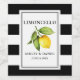 Garrafas de cascalho limão verde limoncelo limoncelo etiquetas com tiras brancas e pretas