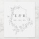 Etiquetas de vinho de casamento elegantes com uma crista de escudo de cinza clara adornada com folhas de cinza de cor d'água, com seu monograma e data de casamento na cinza do centro.