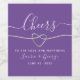 Celebre com estilo com este elegante rótulo de vinho de casamento roxo, apresentando um coração de corda prateada romântica, caligrafia moderna e um fundo violeta ousado. Perfeito para personalizar garrafas de vinho em seu reception ou presentear um souvenir memorável aos convidados.