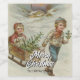 Uma etiqueta de vinho vintage com uma cena de passeio de neve. Personalize com Feliz Natal e seu nome para uma design de garrafa festiva de Natal.