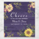 Uma etiqueta elegante, moderna, rústica de vinho de casamentos roxos de madeira com flores de aquarela, girassóis e verde. Saúde ao Amor e Felicidade!