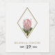 Esta design apresenta uma flor de proteína rústica rosa. A flor da proteína rei com suas folhas verdes é elegantemente emoldurada com uma estrutura de cor de diamante dourado. A flor da protea-rei e seu verde criam um arbusto floral rústico. Design de vinho de casamento russo com elementos modernos elegantes. Os convites de casamento e outros artigos de papelaria também estão disponíveis.