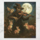 Uma cena assustadora com uma lua de cheio brilhando num campo de milho, Uma espantalho assustadora está tocando violino enquanto alguns animais olham, pequenas criaturas e uma coruja fazem parte dessa estranha foto do Dia das Bruxas.