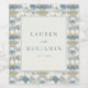 This elegant wedding wine label features a modern, abstract design with a serene color palette of light blue, soft gray, creamy beige, and crisp white. The layout is balanced and symmetrical, showcasing clean typography in an elegant serif font that adds a touch of sophistication. The background consists of dynamic brushstroke-like patterns, creating a textured watercolor effect that enhances the overall aesthetic. Perfect for celebrating your special day, this label combines contemporary style with subtle vintage influences, making it ideal for formal occasions.