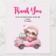 Obrigado de festas, etiquetas com uma ilustração química. Uma preguiça rosa dirigindo em um conversível rosa. Adorável.
