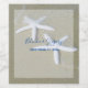 Esta design de praia apresenta duas estrelas brancas na areia. Design de casamento com estrelas-do-mar na praia com ondas a lavá-las. O texto azul do oceano é elegantemente enquadrado com um simples fundo branco opaco de borda. Este é o perfeito design de casamento de destino de praia ideal para um casamento de verão ou ilha tropical. Design de vinho de praia elegante com elementos modernos. Os convites de casamento e outros artigos de papelaria também estão disponíveis.