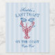 Celebre a noiva na praia com esses rótulos de vinho para festa de solteira com tema costeiro. "Último Brinde na Costa" aparece em letras azuis de verão, com uma ilustração de uma lagosta vermelha brindando com duas taças de champanhe. Personalize com o nome da noiva e destino.
