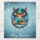 Um belo estilo de desenho animado rende elfo com cabelo vermelho e olhos grandes. Ela veste uma fantasia de elfo verde e vermelho com um chapéu pontiagudo e está cercada por duas renas menores. O fundo é uma cena de inverno esbranquiçada com neve, pinheiros e um céu noturno estrelado. Este design bonitinho vai te deixar no humor para a época de Natal