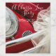 Uma história de amor clássica e simples, uma etiqueta de vinho de carro clássico. Apresenta a tula branca de um vestido de noiva contra um carro clássico vermelho de maçã doce. O amor é um clássico, comece sua própria história de amor mostrando você e sua outra significante.