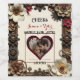 Saúde! Bonito etiquetas de champanhe de casamento com a noiva e a dentro do noivo. Pásley e papel colado branco de borgonha com rosa de burguê, tema do steampunk de engrenagens de metal de ouro e cobre. Citação, "Feliz Para Sempre."