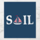 Ilustração de design de texto de vela com decoração de barco à vela em fundo azul escuro. É possível mudar a cor de fundo e adicionar uma diferente à design com sua escolha.