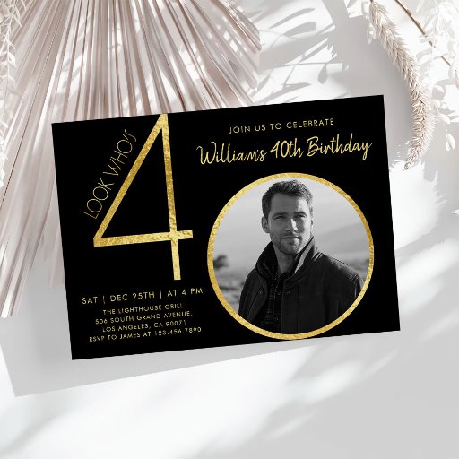 Rótulo Da Garrafa De Água Preta E Dourada Com Foto aniversário de 40 anos