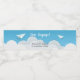 Aviões de papel em voo acima de nuvens brancas fluffy representam alguém se movendo para coisas maiores e melhores. Seu texto impressão no céu e nuvens. Use em garrafas d'água como um favor para uma festa de despedida de qualquer tipo, seja para aposentadoria, férias prolongadas ou sabáticas, uma grande jogada, ou graduação. Disponível com produtos correspondentes.