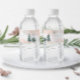 Etiquetas de garrafa de água para chá de fraldas com pinheiros e flocos de neve.
