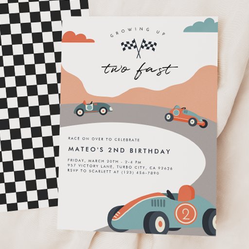 Mantenha os convidados da festa hidratados em estilo com esta adorável etiqueta de garrafa de água com tema de corrida! Apresentando carros de corrida ao estilo vintage em cores retrorreflectoras suaves, uma estrada curvada e espaço para um nome personalizado, é o toque final perfeito para sua festa de aniversário "Duas Rápidas" ou qualquer celebração de criança que ama o carro. Basta embrulhar as garrafas para uma rápida e festiva atualização para a mesa da festa.