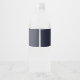 Fases elegantes da lua dourada com cor d'água, etiquetas personalizadas de garrafas de água azul marinho. Linhas de texto modelo para nomes e data do evento na coordenação de branco.