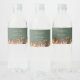 Estas elegantes etiquetas de garrafa de água com o nome da noiva e do noivo e a data do casamento apresentam as folhas de cor d'água queimadas manualmente e de terracota, dahlias creme e bege, e belas rosas de cor ferrugem organizadas como uma fronteira de na moda em um fundo verde sábio. Localizar itens correspondentes na Coleção Romance de outono de Sage.
