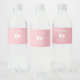 Etiquetas de garrafa de água cor-de-rosa para o chá da sua bebê com "oh baby" num guião branco-na moda com baloiços e uma aquarela branca de pés de bebês. Personalize com seu nome e data de chá.