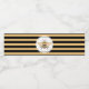Etiquetas de garrafas de água festa de aniversário, bonitas e modernas, com listras negras e amarelas, com uma bela ilustração de uma abelha em círculo branco, criando um medalhão elegante. Personalize e personalize com o nome e os detalhes da festa da aniversariante.