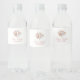 Boêmia Baptism Boho Christening Watercolor Flowers Rótulo da Garrafa de Água. Flores azuis, folhas tropicais terríveis.