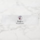 Etiquetas de garrafas de água para eventos com uma pintura aquosa de um gato preto e um buquê floral roxo e rosa claro. Em frente a uma grande lua de cheio. Na moda e mágico.