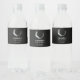 Etiquetas com uma ilustração mística. Uma lua azul escura com um contorno fino elegante e flores brancas ao longo das suas bordas.