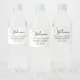 Adicione um toque personalizado moderno ao seu casamento com esta garrafa de água de casamento. Este rótulo da garrafa de água preta apresenta um roteiro manuscrito.