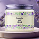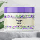 Etiqueta impermeável para produtos cosméticos e/ou de sabão com fundo brando, flores roxas e folhas verdes. Personalize-o com as informações de seus negócios e produtos.