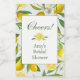 Da nossa colecção Lemon Main Squeeze, uma aquarela de limões roliços sobre um fundo azul claro é realçada por letras verdes vibrantes. Basta personalizar com a sua mensagem e está pronto a usar. É uma lembrança perfeita para o seu evento com tema de limão.