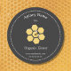Etiqueta editável para seus potes de mel com fundo preto e uma ilustração de uma abelha no pente de mel. Perfeito para o seu mel caseiro ou para vender os seus produtos (apiário, vendedor de mel ou apicultor).