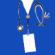 Criativo que ensina o adesivo da graduação da escola de enfermagem ou a decoração do rótulo da garrafa de formando com esfregões médicos azuis. Editar texto para adicionar o nome do formando de enfermagem.