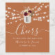 Convite de casamento elegante, moderno, rústico, laranja queimado com terracota com monograma, lindas flores aquáticas em jarro de pedras, luzes de cordas e roteiro de caligrafia. Escolha perfeita para casamentos outono românticos. Felicidades!