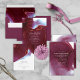 Um fundo de abstrato que lembra a tinta líquida em tons de burgundy profunda através de ciano e branco é o pano de fundo para elegantes textos manuscritos e layouts modernos de design nos pedaços desta bela suíte de casamento. A etiqueta do vinho de casamento mostrada aqui apresenta as informações acima e uma modelo para adicionar suas próprias informações pertinentes. Procure ID762 para ver todas as peças de coordenação neste conjunto.