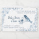Comemore em estilo com esta etiqueta empoeirada de vinho espumante de chá de fraldas azul, com detalhes florais elegantes e uma ilustração de aves vintage. Um favor encantador para torradas de espuma ou presentes de festa.