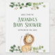 Rótulo de vinho floral para chá de bebê com leão e folhagem