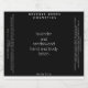 Uma etiqueta elegante e minimalista à prova d'água para produtos cosméticos feitos à mão. Esta etiqueta apresenta um fundo preto com texto branco e borda branca e tem espaço para o seu nome comercial, nome do produto, descrição e instruções do produto e lista de ingredientes.