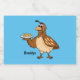 Esta design apresenta uma codorniz feliz com ovos em uma placa. Desenhado no estilo de desenho animado.