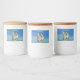 Este rótulo personalizado para um pote de comida tem uma fada elegante de borboleta com asas de borboleta monarca vestindo um vestido de ouro rico sob um céu azul. Personalize seu texto com o modelo.