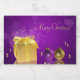Glamorosa ilustração mágica de Natal: Caixa de presentes de ouro com espuma ao lado de ouro e bolas de árvore de natal roxas e pérolas de ouro num fundo elegante de boque roxo.