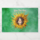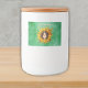 This custom label for a food jar or box has a smiling face of a girl with brown hair in a big yellow sunflower on shades of green background. Customise your text with the template.