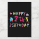 Feliz aniversário de 7. Design de aniversário engraçado e fofo com um lindo ursinho de pelúcia segurando um presente e um lápis engraçado escrevendo os desejos de aniversário. Uma combinação perfeita para roupas, camisas e acessórios.
