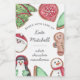 Personalize essas lindas etiquetas com seu nome e tipo de biscoito para uma maneira doce de rotular seus produtos cozidos de férias. Design apresenta ilustrações de cookies de aquarela em formas de feriado, incluindo Papais noeis, ornamentos, pinguim, boneco de neve e árvore de Natal. Inclui três campos de texto personalizados; mostrados com "assado com amor por", seu nome e tipo de cookie.