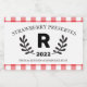 Rotule suas receitas caseiras com um toque de país! Um padrão de gingham vermelho borda um espaço para incluir seu monograma inicial, cercado por um louro preto. O texto acima e abaixo permite a personalização, incluindo o tipo de comida, o seu nome e a data.
