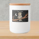 Este rótulo personalizado para um pote ou caixa de comida tem uma coruja marrom fantasma com olhos ouros amarelos vestindo um colar de cristal roxo sentado num galho com lua crescente branca e estrelas num céu noturno negro. Personalize seu texto com o modelo.