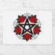 Pentagrama preto com padrão, decorado com floração, rosas vermelhas com folhas em fundo branco. Tatuagem.