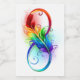 Símbolo infinito desenhado artificialmente com uma bela pena arco-íris sobre fundo branco. Tatuagem.