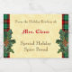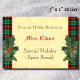 Uma comida personalizada, cozedura ou adesivo de receitas lendo "Da Cozinha de Férias de" e espaço para o seu nome em letras vermelhas e texto de bloqueio em castanho e um design de feriado de sprigs de holly em um padrão de xadrez vermelha e verde e um fundo de pergaminho rústico. Para seus pães de Natal especiais, nozes ou receitas em um frasco.