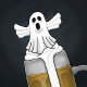 O fantasma assustador está pronto com boo e cervejas para a festa de Halloween deste ano.