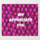 Agradeça seus clientes ou funcionários leais com uma refeição de agradecimento que inclui rótulos de garrafa de cerveja com uma mensagem de agradecimento. Cada rótulo de cerveja apresenta fio de tricô rosa brilhante junto com suas palavras de agradecimento. Todo o texto pode ser facilmente personalizado.